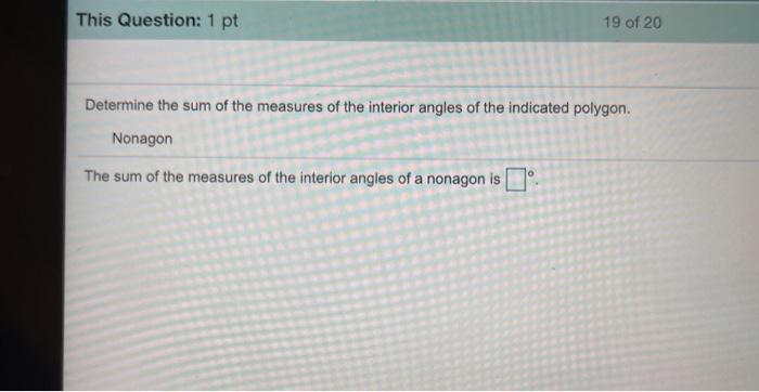 For example the interior angles of a pentagon always add up to 540° no matter if it regular or irregular, convex or the sum of the interior angles of a polygon is given by the formula hence, the measure of each interior angle of the given regular polygon is 140°.